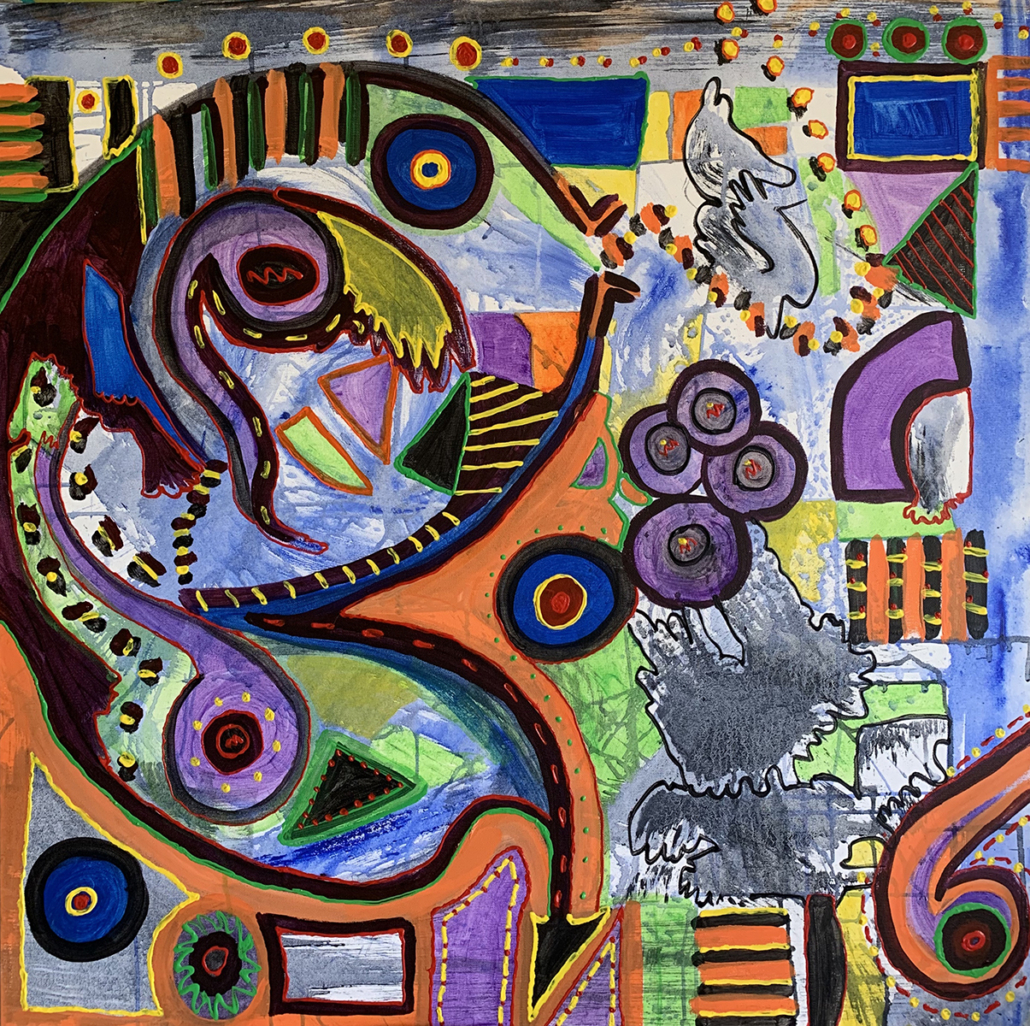 When strokes are put down on the canvas each and every stroke is a word or visual energy that can be sensed and read. The color or thickness of the strokes changes the intensity of the words. The more strokes or washes the more dialogue develops. This composition of words allows the figures to interact with one another, the painter, and the viewer.