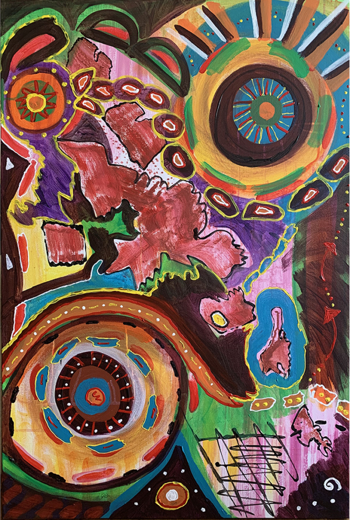 The imagery created in these paintings is based on an emotional and linguistic nurturing that exists between the creator and the work. This nurturing is similar to a parent teaching a child the knowledge and language necessary for them to communicate.
