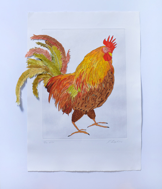 I am fascinated by the mediums that I work in. I love the long exploration that printmaking, particularly etching and relief, affords me. Sometimes I prefer the immediacy of painting. And recently I have been manipulating used etching plates and firing them with glass enamel, to become yet another art form. I use the media that are available to me to suit the imagery I have in mind, and to expand my ideas until I feel satisfied.